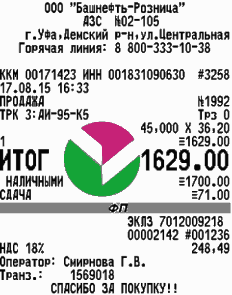 На данном рынке мы трудимся более 6 лет, что позволило нам стать лидером в этом сегменте! Мы имеем самую большую базу АЗС по всей России и сможем изготовить чек без каких либо проблем! Так же наши специалисты готовы восстановить кассовый чек на топливо в Казани, по Вашему образцу.